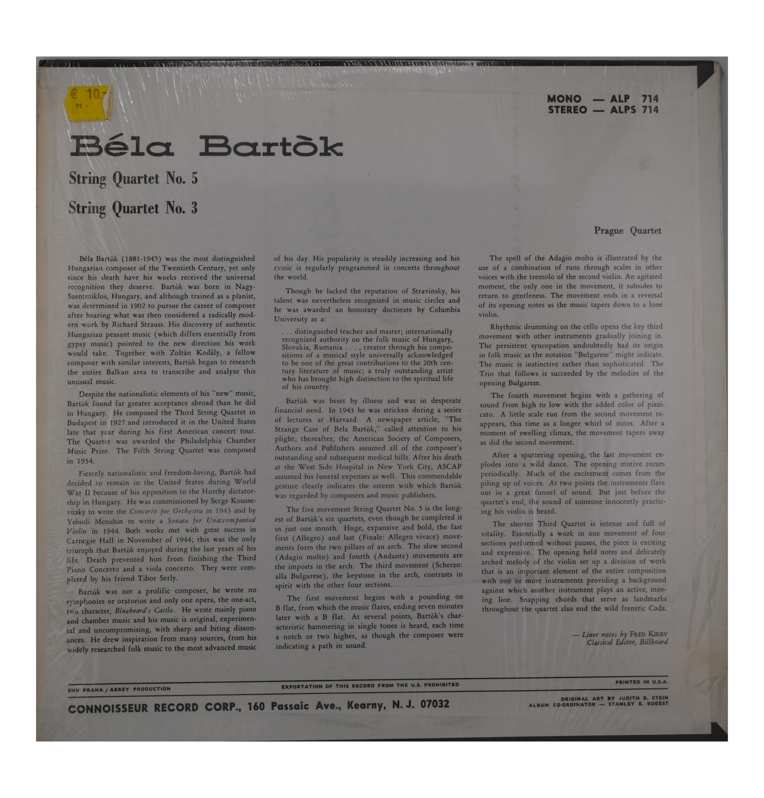 Bartok String Quartets 5 & 3, Prague Quartet, 1966