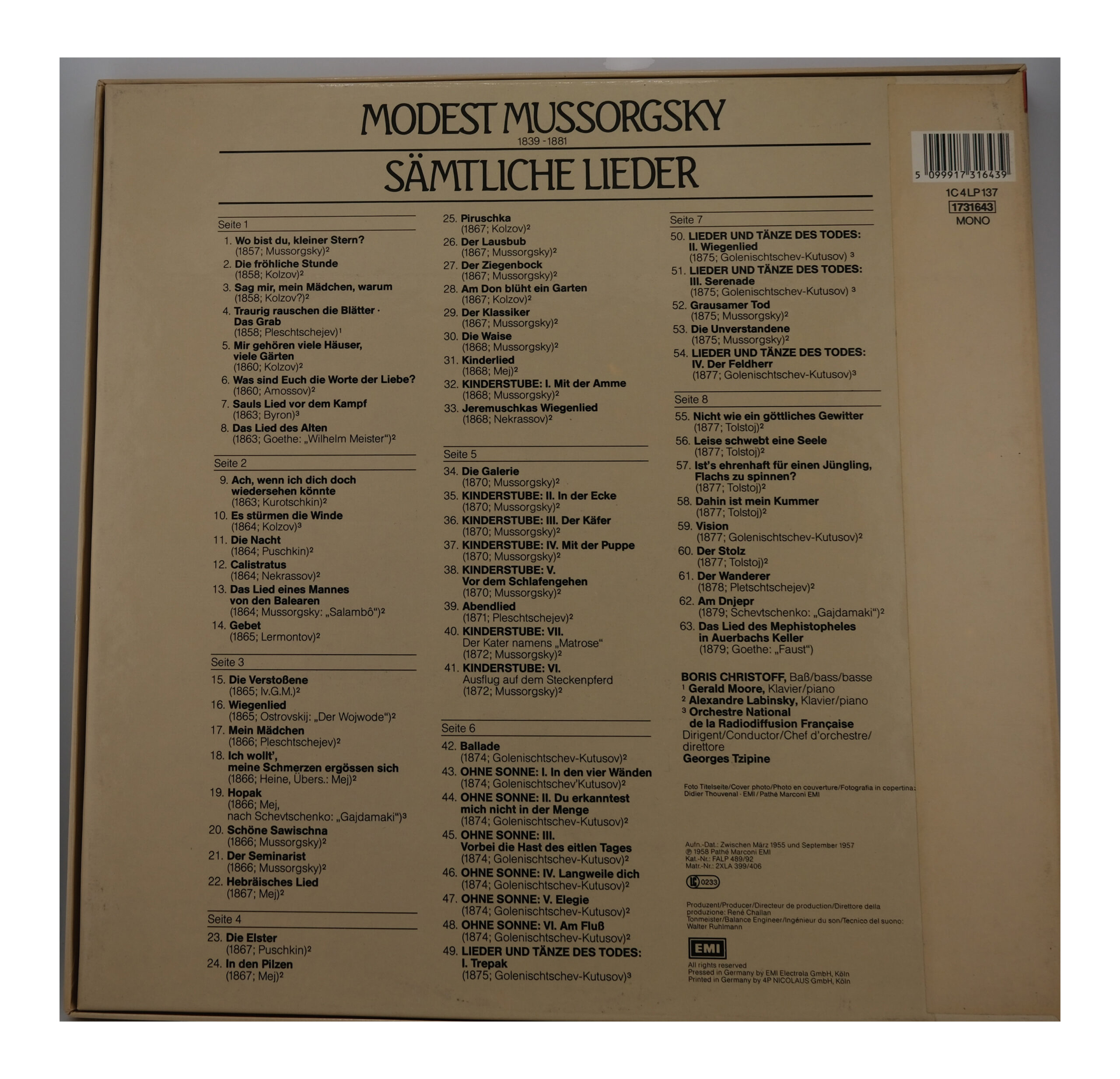 Mussorgsky, Boris Christoff, Lieder Complets