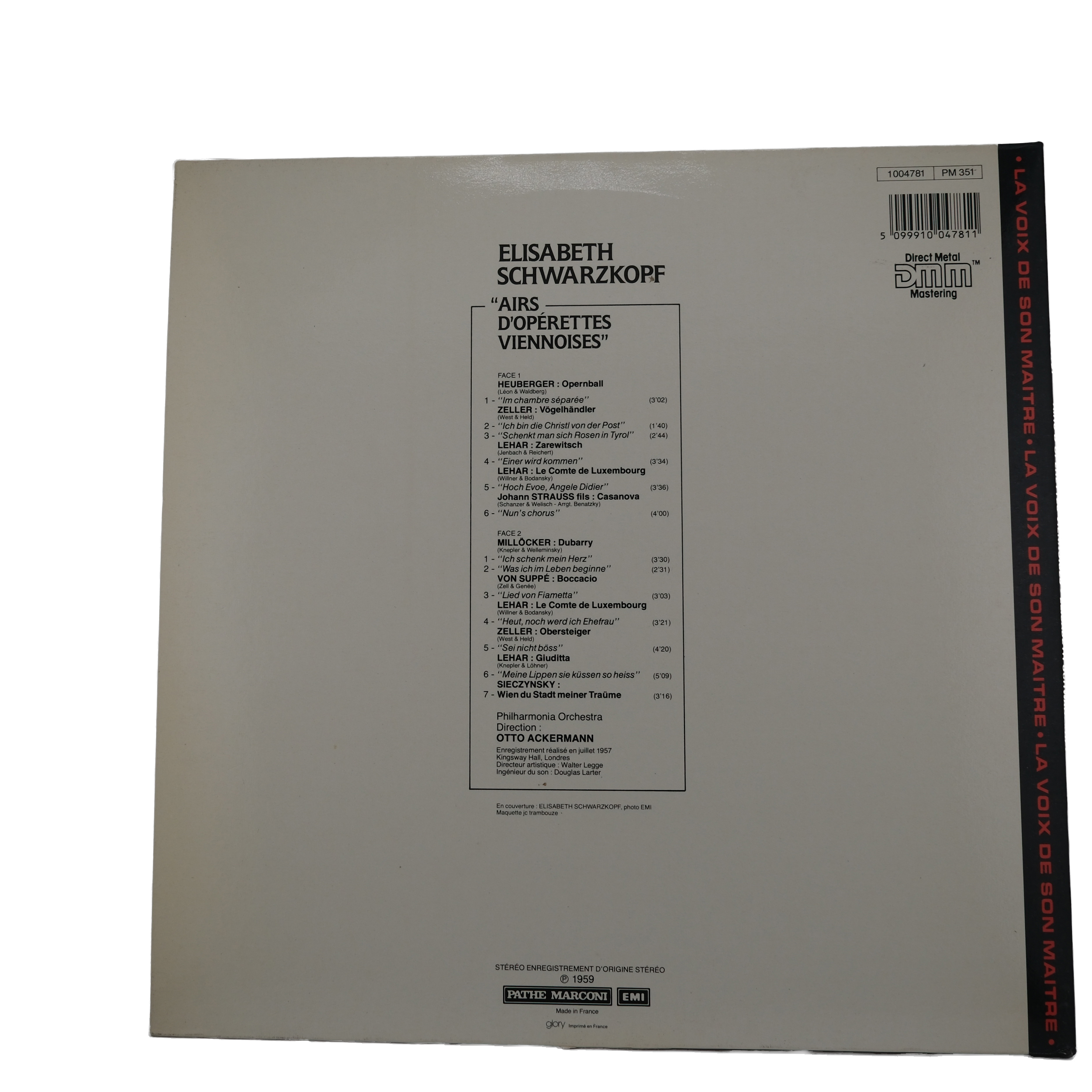 Découvrez l’élégance des airs d’opérettes viennoises avec cet enregistrement en stéréo sur le fameux label « La Voix De Son Maître ». Sous la direction experte d’Otto Ackermann, cet album met en valeur la voix remarquable d’Elisabeth Schwarzkopf, accompagnée par le prestigieux Philharmonia Orchestra. Ce disque propose une sélection variée d’airs mémorables, dont « Im Chambre Séparée » extrait de « Der Opernball » et l’envoûtant « Meine Lippen, Sie Küssen So Heiss » de « Guiditta ». Chaque pièce est un voyage dans l’univers lyrique viennois, évoquant à la fois nostalgie et passion.